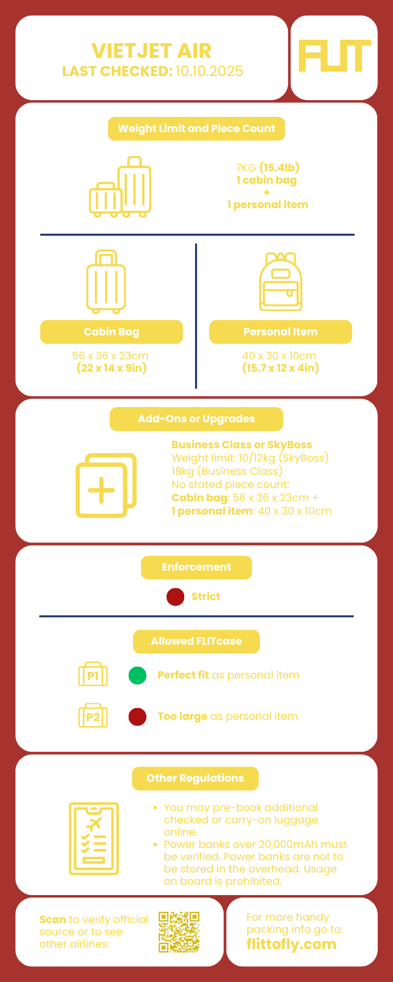 Weight and piece count: 7kg - 1 cabin bag + 1 personal item